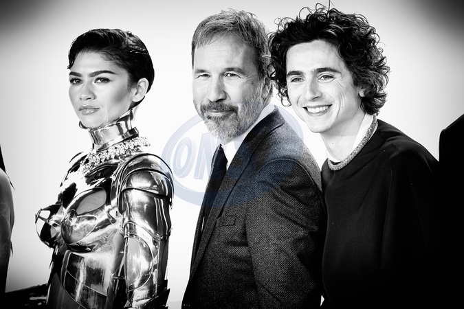 Zendaya, Denis Villeneuve and Timothée Chalamet photographed attending at Leicester Square in London, UK on 16 February 2024 .EDITORS NOTE: Image converted to Black and White., Credit:Julie Edwards / Avalon