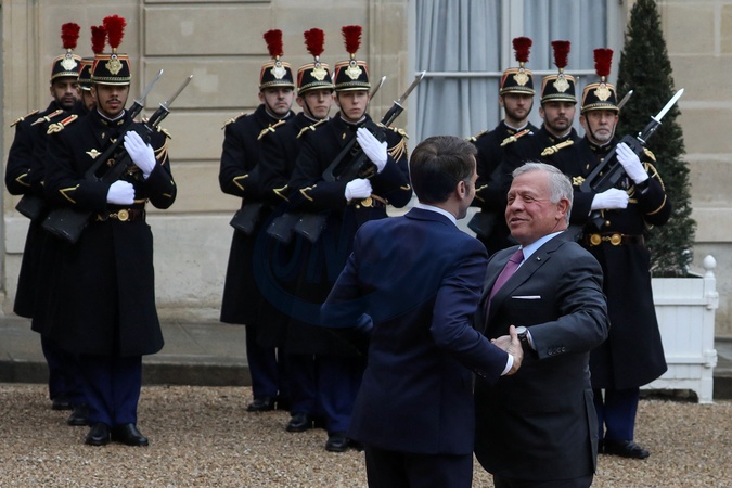 Le président français Emmanuel Macron reçoit Le roi Abdallah II de Jordanie pour un entretien au palais de l'Elysée à Paris