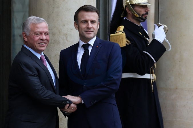 Le président français Emmanuel Macron reçoit Le roi Abdallah II de Jordanie pour un entretien au palais de l'Elysée à Paris