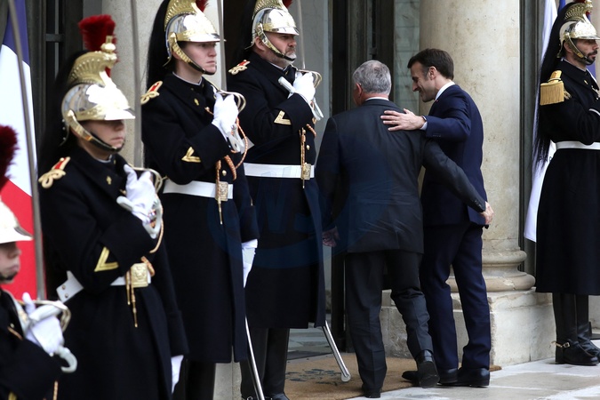 Prezydent Francji Emmanuel Macron przyjmuje króla Jordanii Abdullaha II na rozmowę w Pałacu Elizejskim w Paryżu