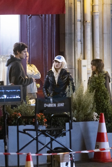 Exclusif - Prix Spécial - Tournage de la saison 4 de série Netflix "Emily in Paris" sur la place de L’estrapade à Paris