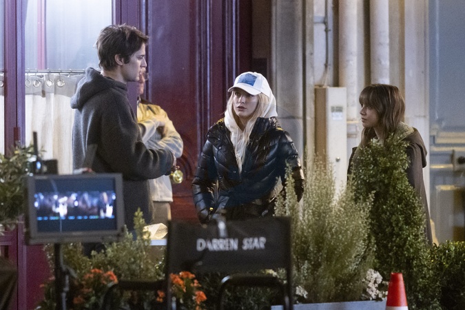 Exclusif - Prix Spécial - Tournage de la saison 4 de série Netflix "Emily in Paris" sur la place de L’estrapade à Paris