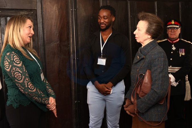 WELLINGBOROUGH, ENGLAND - FEBRUARY 16: Princess Anne, Princess Royal talks to Directors and Co-Founders Jane Capps (L) and Ravaun Jones during a visit to knife crime community group 'Off The Streets' on February 16, 2024 in Wellingborough, England. Off the Streets NN was started in 2021 after the tragic death of 16-year-old Dylan Holliday, due to knife crime., Credit:Darren Staples / Avalon