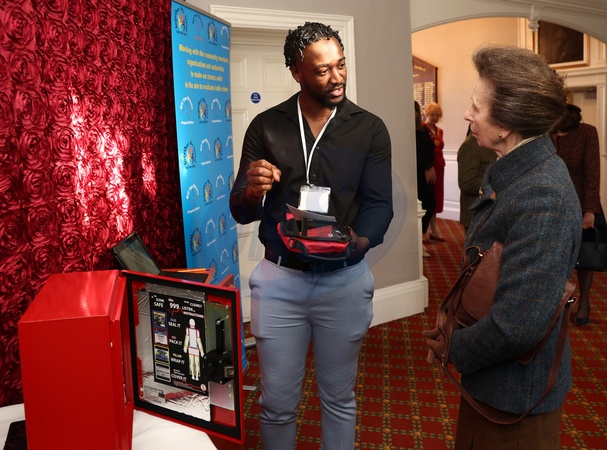 WELLINGBOROUGH, ENGLAND - FEBRUARY 16: Princess Anne, Princess Royal is shown a emergency bleed control kit by Ravaun Jones, Director and Co-Founder during a visit to knife crime community group 'Off The Streets' on February 16, 2024 in Wellingborough, England. Off the Streets NN was started in 2021 after the tragic death of 16-year-old Dylan Holliday, due to knife crime., Credit:Darren Staples / Avalon