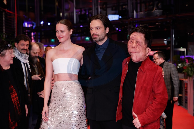 Renate Reinsve, Sebastian Stan and Adam Pearson photographed at the Red carpet of 'A Different Man' at Berlinale Palace in Berlin, Germany on 16 Feburary 2024., Credit:John Rasimus / Avalon