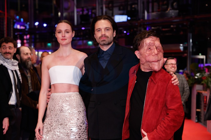 Renate Reinsve, Sebastian Stan and Adam Pearson photographed at the Red carpet of 'A Different Man' at Berlinale Palace in Berlin, Germany on 16 Feburary 2024., Credit:John Rasimus / Avalon