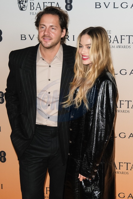 Tom Ackerley and Margot Robbie arriving at the 2024 EE BAFTA Nominees Party Supported by BULGARI on Saturday 17 February 2024 at The National Gallery, London. ., Credit:Julie Edwards / Avalon