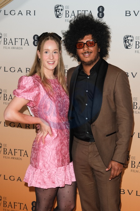 Theresa Varga and Nathan Byron arriving at the 2024 EE BAFTA Nominees Party Supported by BULGARI on Saturday 17 February 2024 at The National Gallery, London. ., Credit:Julie Edwards / Avalon
