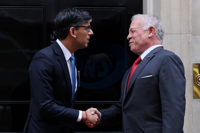 15/02/2024. London, United Kingdom. The Prime Minister, Rishi Sunak meets with the King of Jordan, His Majesty King Abdullah II bin Al-Hussein for a Bilateral meeting at No10 Downing Street., Credit:Rory Arnold / Avalon