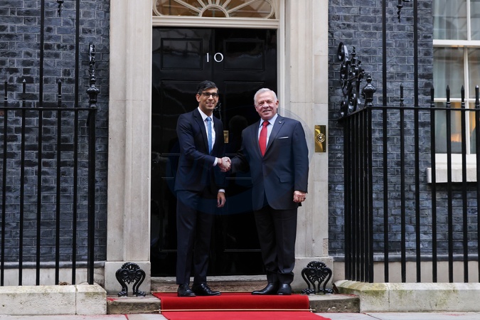 15/02/2024. London, United Kingdom. The Prime Minister, Rishi Sunak meets with the King of Jordan, His Majesty King Abdullah II bin Al-Hussein for a Bilateral meeting at No10 Downing Street., Credit:Rory Arnold / Avalon