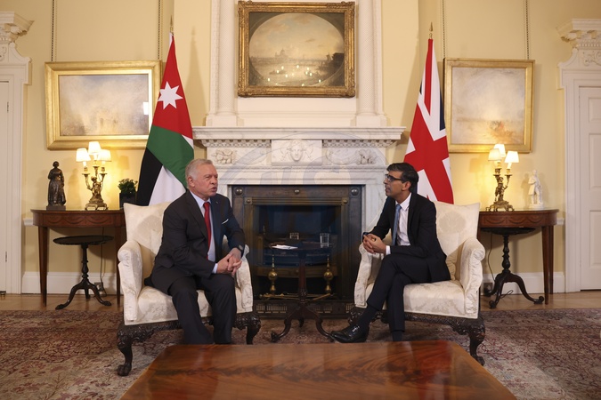 15/02/2024. London, United Kingdom. The Prime Minister, Rishi Sunak meets with the King of Jordan, King Abdullah II bin Al-Hussein for a Bilateral meeting at No10 Downing Street., Credit:Rory Arnold / Avalon