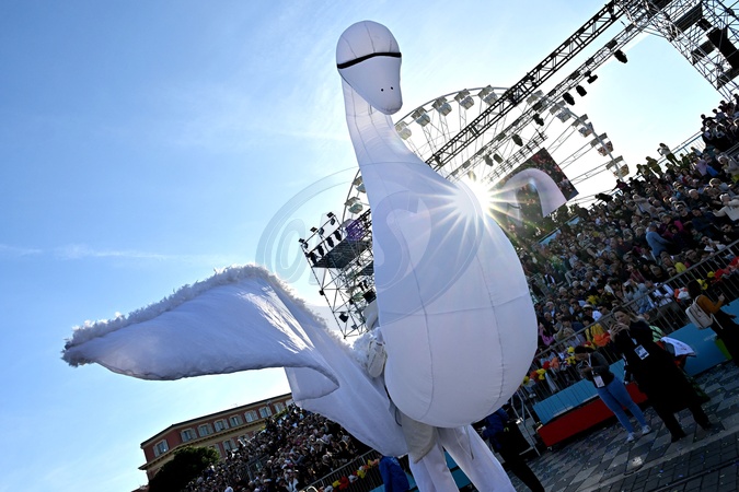 Illustration durant le défilé d'ouverture du Carnaval de Nice 2024 "Roi de la Pop Culture", le 17 février 2024. C'est les 151 ans du Carnaval et la 139eme édition. L'événement se déroule du 17 février au 3 mars. Le Carnaval de Nice est le 1er carnaval de France et l'un des plus célèbres du monde, avec ceux de Rio et de Venise, attirant chaque année des centaines de milliers de spectateurs. © Bruno Bebert/Bestimage 151th edition of the Nice Carnival in the French Riviera City, France, on February 17, 2024. The Carnival takes place until March 02, 2024 on the theme "King of pop culture".