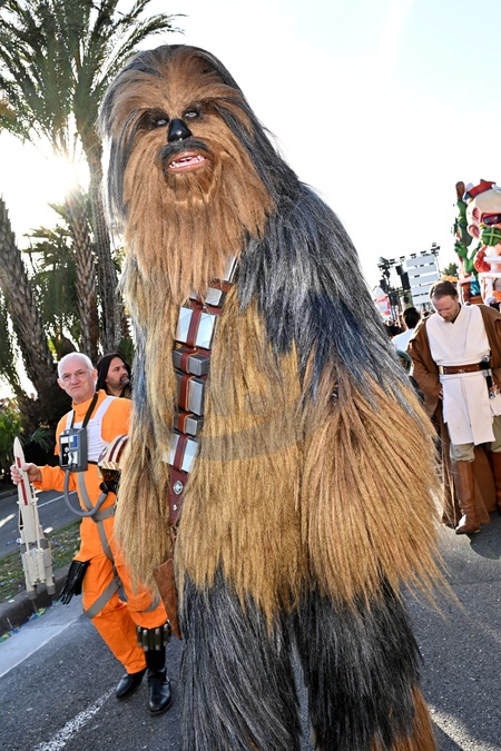 Illustration durant le défilé d'ouverture du Carnaval de Nice 2024 "Roi de la Pop Culture", le 17 février 2024. C'est les 151 ans du Carnaval et la 139eme édition. L'événement se déroule du 17 février au 3 mars. Le Carnaval de Nice est le 1er carnaval de France et l'un des plus célèbres du monde, avec ceux de Rio et de Venise, attirant chaque année des centaines de milliers de spectateurs. © Bruno Bebert/Bestimage 151th edition of the Nice Carnival in the French Riviera City, France, on February 17, 2024. The Carnival takes place until March 02, 2024 on the theme "King of pop culture".