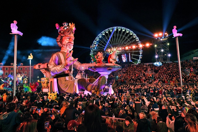 Pierwsza oświetlona parada karnawałowa karnawału w Nicei 2024 „Król Popkultury