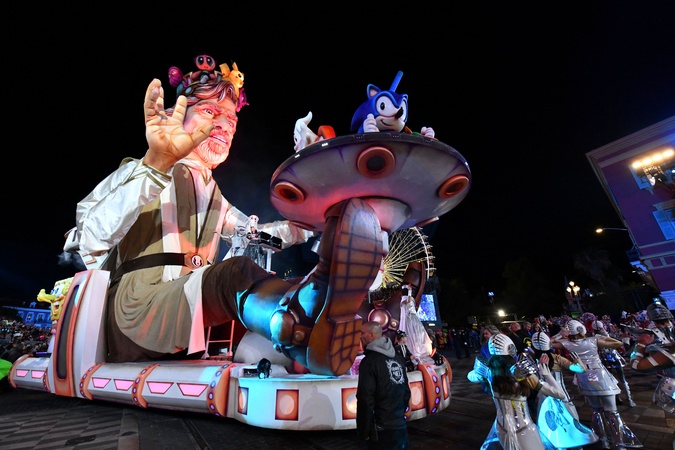 Premier corso carnavalesque illuminé du Carnaval de Nice 2024 "Roi de la Pop Culture"