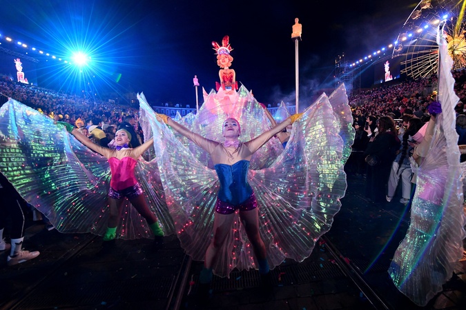 Pierwsza oświetlona parada karnawałowa karnawału w Nicei 2024 „Król Popkultury