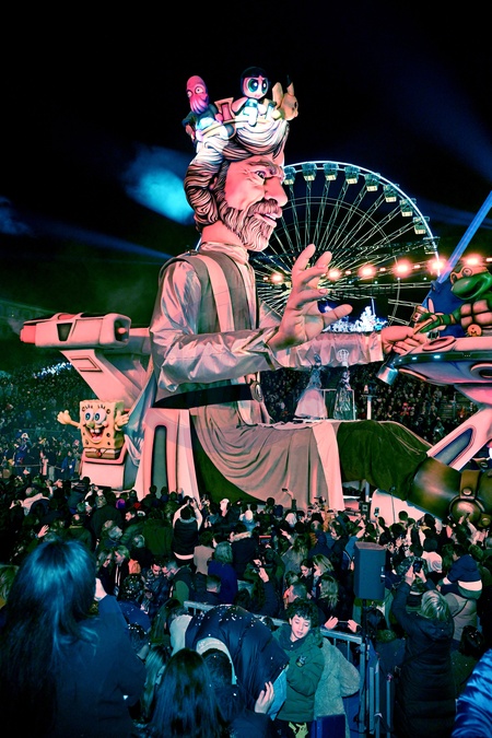 Pierwsza oświetlona parada karnawałowa karnawału w Nicei 2024 „Król Popkultury