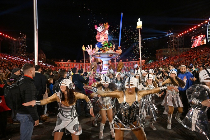 Pierwsza oświetlona parada karnawałowa karnawału w Nicei 2024 „Król Popkultury