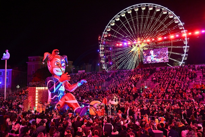 Pierwsza oświetlona parada karnawałowa karnawału w Nicei 2024 „Król Popkultury
