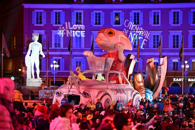 Pierwsza oświetlona parada karnawałowa karnawału w Nicei 2024 „Król Popkultury