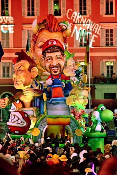 Premier corso carnavalesque illuminé du Carnaval de Nice 2024 "Roi de la Pop Culture"