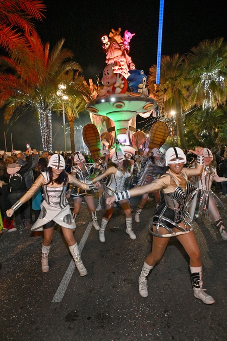 Pierwsza oświetlona parada karnawałowa karnawału w Nicei 2024 „Król Popkultury