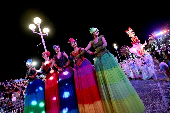 Pierwsza oświetlona parada karnawałowa karnawału w Nicei 2024 „Król Popkultury