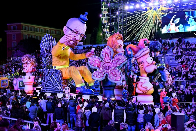 Pierwsza oświetlona parada karnawałowa karnawału w Nicei 2024 „Król Popkultury