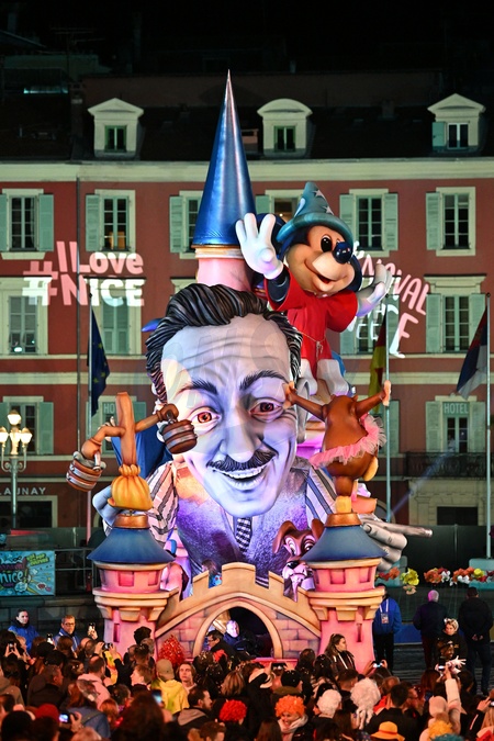 Le char 100% Walt durant le premier corso carnavalesque illuminé du Carnaval de Nice 2024 "Roi de la Pop Culture", le 17 février 2024. C'est les 151 ans du Carnaval et la 139eme édition. L'événement se déroule du 17 février au 3 mars. Le Carnaval de Nice est le 1er carnaval de France et l'un des plus célèbres du monde, avec ceux de Rio et de Venise, attirant chaque année des centaines de milliers de spectateurs. © Bruno Bebert/Bestimage 151th edition of the Nice Carnival in the French Riviera City, France, on February 17, 2024. The Carnival takes place until March 02, 2024 on the theme "King of pop culture".