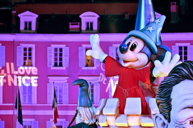 Le char 100% Walt durant le premier corso carnavalesque illuminé du Carnaval de Nice 2024 "Roi de la Pop Culture", le 17 février 2024. C'est les 151 ans du Carnaval et la 139eme édition. L'événement se déroule du 17 février au 3 mars. Le Carnaval de Nice est le 1er carnaval de France et l'un des plus célèbres du monde, avec ceux de Rio et de Venise, attirant chaque année des centaines de milliers de spectateurs. © Bruno Bebert/Bestimage 151th edition of the Nice Carnival in the French Riviera City, France, on February 17, 2024. The Carnival takes place until March 02, 2024 on the theme "King of pop culture".