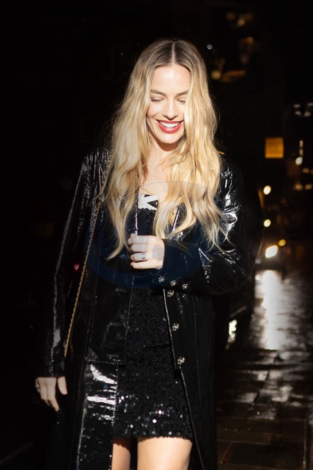 Margot Robbie à la sortie de la soirée Pre-BAFTA Charles Finch & Chanel 2024 au 5 Hertford Street à Londres