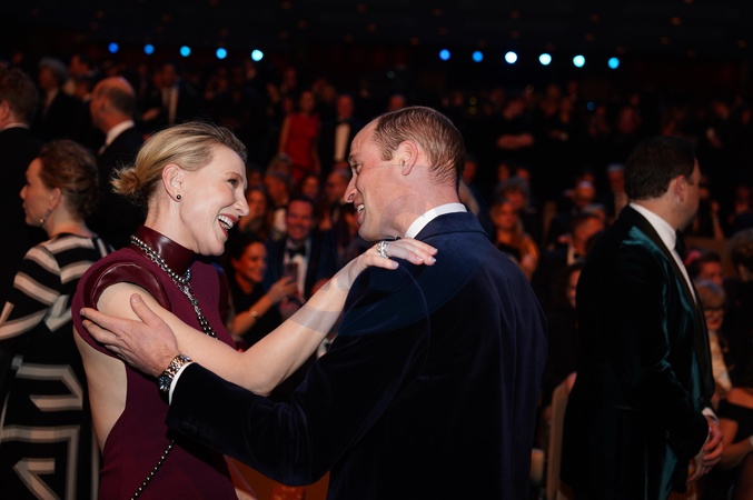 The Prince of Wales, president of Bafta, talks with Cate Blanchett at the Bafta Film Awards 2024, at the Royal Festival Hall, Southbank Centre, London., Credit:Jordan Pettitt / Avalon