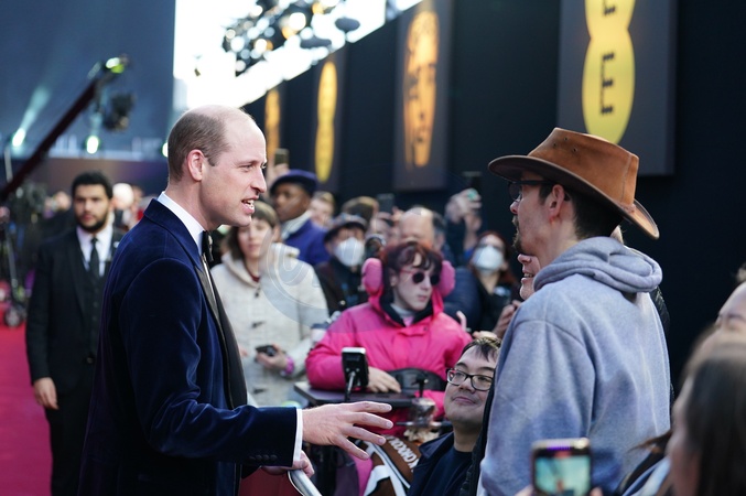 The Prince of Wales, president of Bafta, speaks to members of the publice as he attends the Bafta Film Awards 2024, at the Royal Festival Hall, Southbank Centre, London., Credit:Jordan Pettitt / Avalon