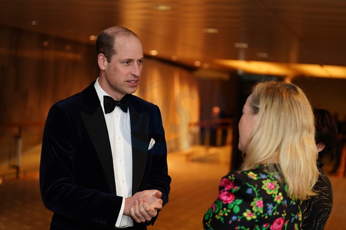 The Prince of Wales, president of Bafta, talks with Charlotte Moore BBC chief content officer, as he attends the Bafta Film Awards 2024, at the Royal Festival Hall, Southbank Centre, London., Credit:Jordan Pettitt / Avalon