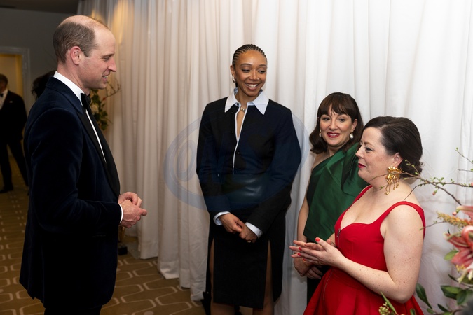 The Prince of Wales meets Earth Mama Director Savannah Leaf, and producer Medb Riodan and producer Shirley O'Connor after the Bafta Film Awards 2024, at the Royal Festival Hall, Southbank Centre, London., Credit:Jordan Pettitt / Avalon