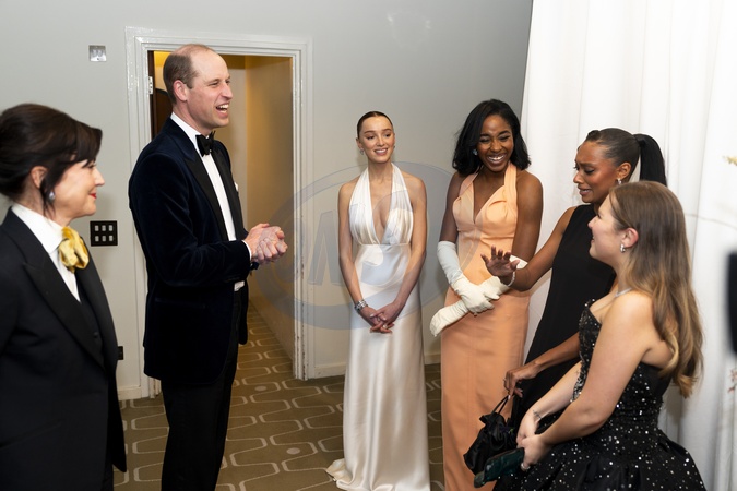 The Prince of Wales meets EE Rising Stars Phoebe Dynevor, Ayo Edebiri, Sophie Wilde and Mia McKenna Bruce after the Bafta Film Awards 2024, at the Royal Festival Hall, Southbank Centre, London., Credit:Jordan Pettitt / Avalon