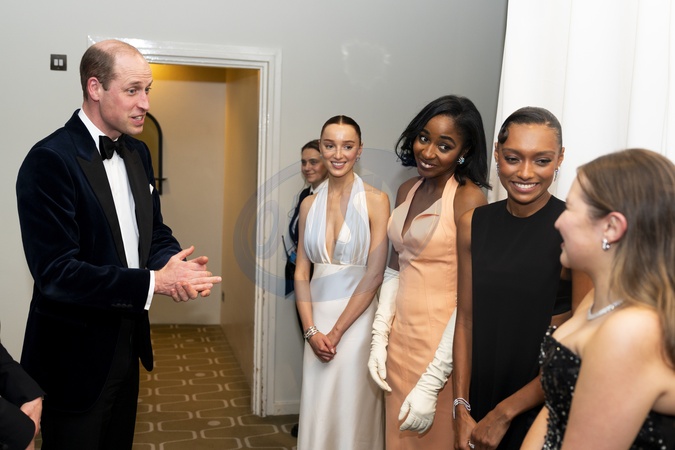 The Prince of Wales meets EE Rising Stars Phoebe Dynevor, Ayo Edebiri, Sophie Wilde and Mia McKenna Bruce after the Bafta Film Awards 2024, at the Royal Festival Hall, Southbank Centre, London., Credit:Jordan Pettitt / Avalon