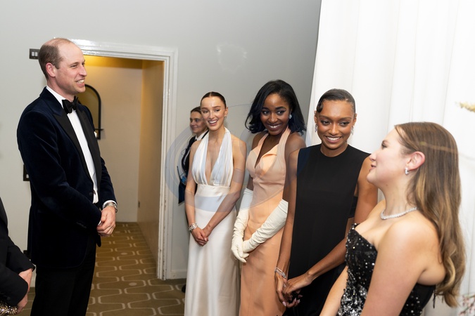 The Prince of Wales meets EE Rising Stars Phoebe Dynevor, Ayo Edebiri, Sophie Wilde and Mia McKenna Bruce after the Bafta Film Awards 2024, at the Royal Festival Hall, Southbank Centre, London., Credit:Jordan Pettitt / Avalon