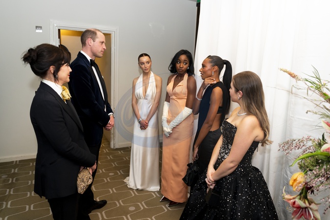The Prince of Wales meets EE Rising Stars Phoebe Dynevor, Ayo Edebiri, Sophie Wilde and Mia McKenna Bruce after the Bafta Film Awards 2024, at the Royal Festival Hall, Southbank Centre, London., Credit:Jordan Pettitt / Avalon