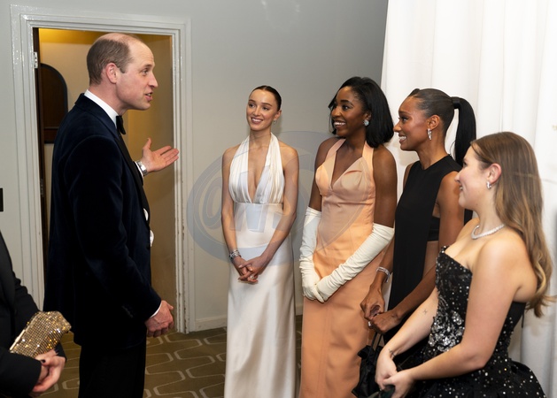 The Prince of Wales meets EE Rising Stars Phoebe Dynevor, Ayo Edebiri, Sophie Wilde and Mia McKenna Bruce after the Bafta Film Awards 2024, at the Royal Festival Hall, Southbank Centre, London., Credit:Jordan Pettitt / Avalon