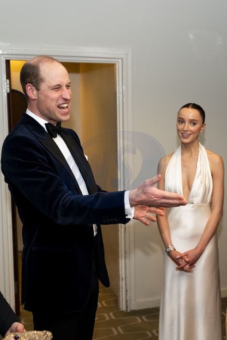 EE Rising Star nominee Phoebe Dynevor, looks on as the Prince of Wales meets other EE Rising Stars, Ayo Edebiri, Sophie Wilde and Mia McKenna Bruce (not in picture) after the Bafta Film Awards 2024, at the Royal Festival Hall, Southbank Centre, London., Credit:Jordan Pettitt / Avalon