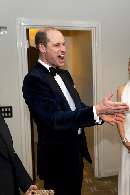 The Prince of Wales reacts as he meets EE Rising Stars Phoebe Dynevor, Ayo Edebiri, Sophie Wilde and Mia McKenna Bruce after the Bafta Film Awards 2024, at the Royal Festival Hall, Southbank Centre, London., Credit:Jordan Pettitt / Avalon