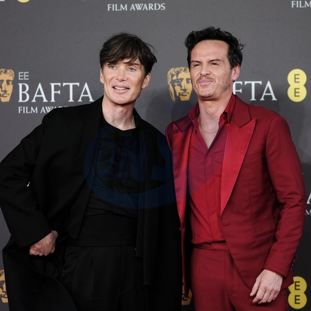 Cillian Murphy and Andrew Scott arriving at the 2024 EE BAFTA Film Awards on Sunday 18 February 2024 at Royal Festival Hall, London. ., Credit:Julie Edwards / Avalon