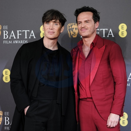 Cillian Murphy and Andrew Scott arriving at the 2024 EE BAFTA Film Awards on Sunday 18 February 2024 at Royal Festival Hall, London. ., Credit:Julie Edwards / Avalon