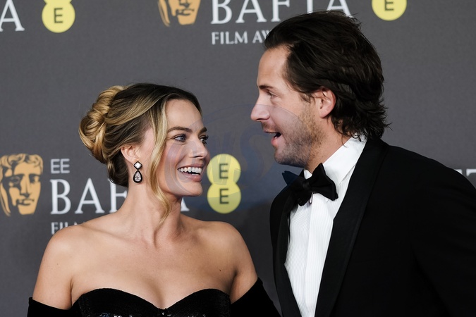 Margot Robbie and Tom Ackerley arriving at the 2024 EE BAFTA Film Awards on Sunday 18 February 2024 at Royal Festival Hall, London. ., Credit:Julie Edwards / Avalon
