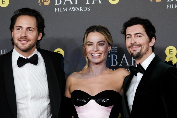 Margot Robbie and Tom Ackerley arriving at the 2024 EE BAFTA Film Awards on Sunday 18 February 2024 at Royal Festival Hall, London. ., Credit:Julie Edwards / Avalon