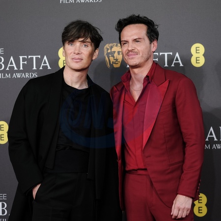 Cillian Murphy and Andrew Scott arriving at the 2024 EE BAFTA Film Awards on Sunday 18 February 2024 at Royal Festival Hall, London. ., Credit:Julie Edwards. / Avalon
