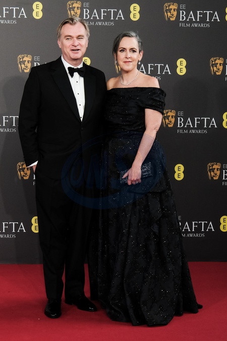 Christopher Nolan and Emma Thomas arriving at the 2024 EE BAFTA Film Awards on Sunday 18 February 2024 at Royal Festival Hall, London. ., Credit:Julie Edwards / Avalon