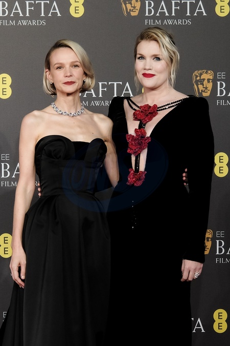 Carey Mulligan and Emerald Fennell arriving at the 2024 EE BAFTA Film Awards on Sunday 18 February 2024 at Royal Festival Hall, London. ., Credit:Julie Edwards / Avalon