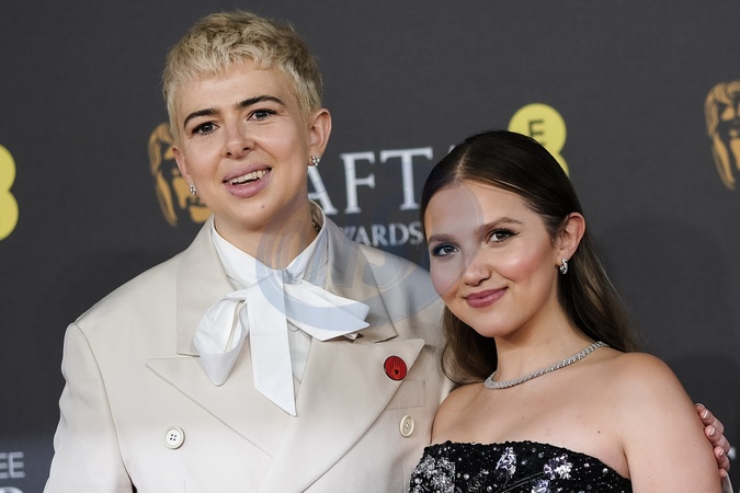 Molly Manning Walker and Mia Mckenna-Bruce arriving at the 2024 EE BAFTA Film Awards on Sunday 18 February 2024 at Royal Festival Hall, London. ., Credit:Julie Edwards. / Avalon